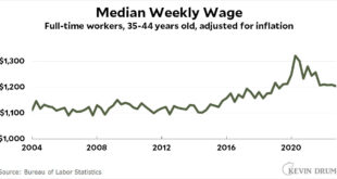 There is a general narrative that younger generation are doing worse then older generations. When a narrative is “common knowledge” it is worth investigating if it is true or not. For the 35-44 year age range Kevin Drum has done just that in his post The (not kids anymore) are …