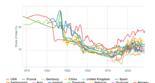 How we answer this questions depends on what we mean by best and the comparison group. For today we’ll look at the share of income by the top 1% and compare mostly western Europe countries. The graph here is from the world income database. It is good to be in …